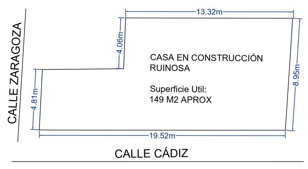 - Casa haciendo esquina con todas las dependencias a la calle, desnivel en la parte mas baja ideal para construir Garaje de varios vehículos y entrada principal a en calle Zaragoza.