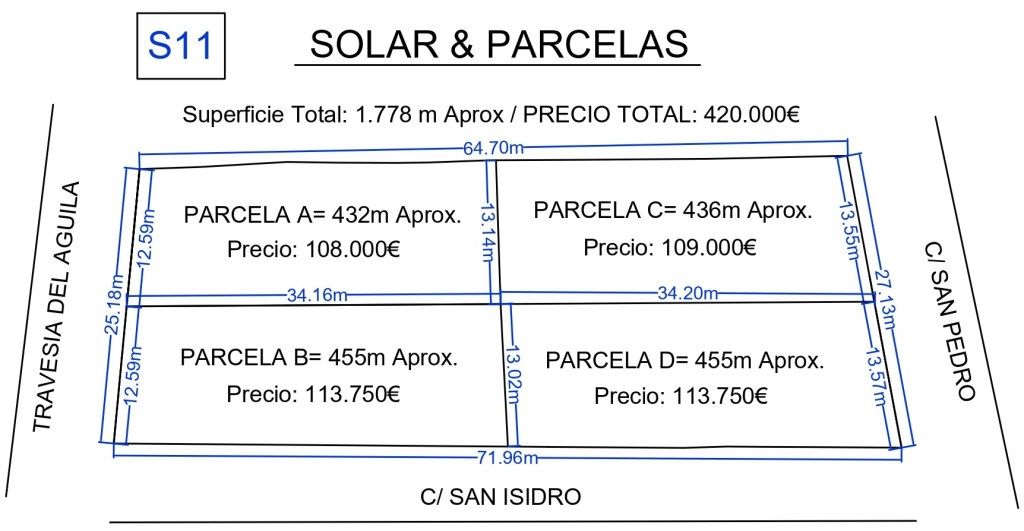 PARCELA C: (C/ San Pedro) 430 m2 Aprox. PRECIO: 253€/m2 Aprox.