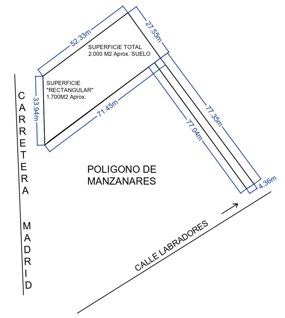 Solar industrial en la localidad de Manzanares con ACCESO a 2 calles, antigua ctra. de Madrid y calle labradores, ideal para la construcción de nave y/o cerramiento para almacén logístico.