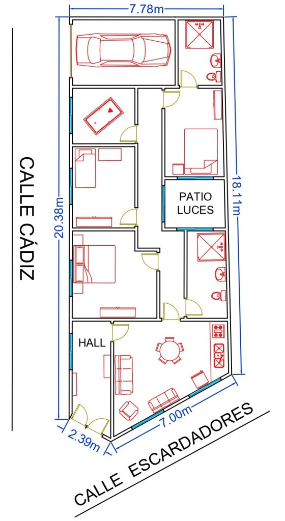 - Discurre a 2 calles, c/ Cádiz y c/ Escardadores, difícil mejorar la distribución de la parcela.