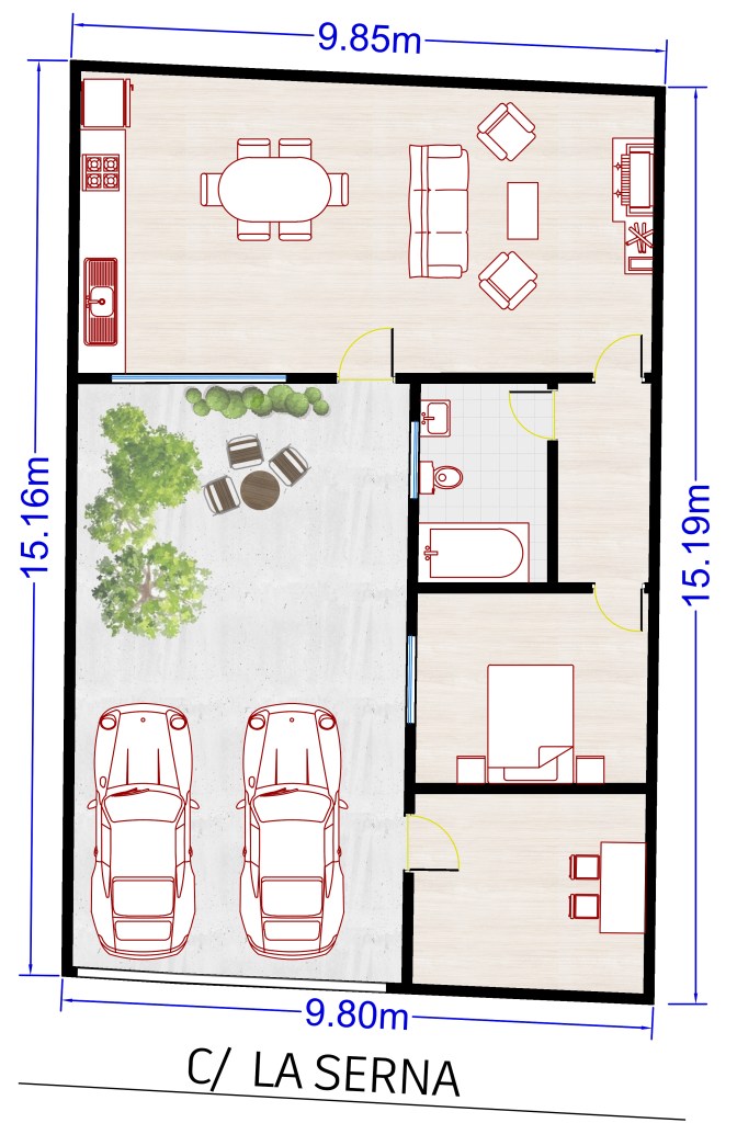 - Vivienda completa compuesta por gran comedor y cocina, 2 dormitorios y un almacén que perfectamente puede destinarse a otro dormitorio, wc y patio garaje.