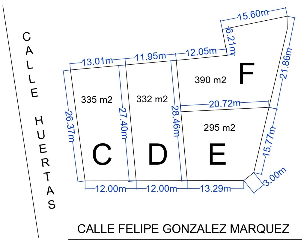 PARCELA C, D, E y F — PRECIO: 290€/m2 + IVA (en notaria pagaras únicamente el 1,5% de impuesto en lugar del 9% habitual)