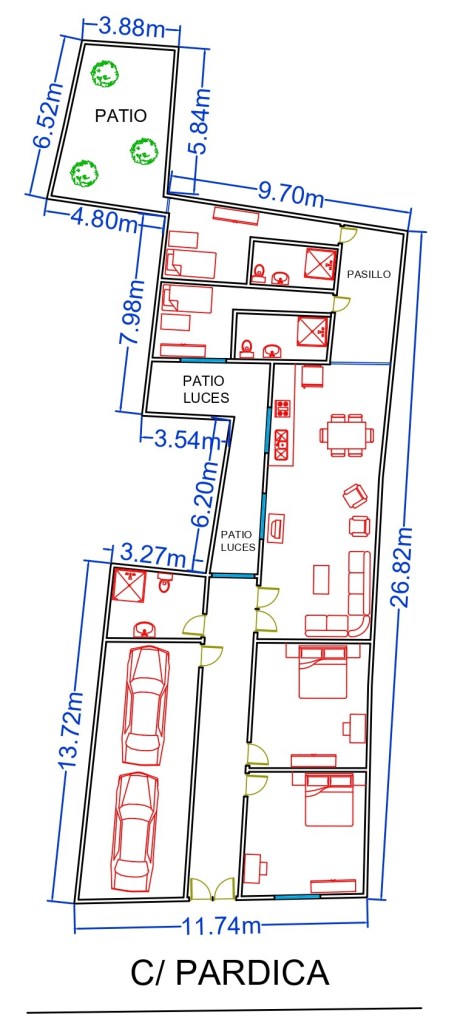 - Solar GRANDE, rectangular ideal para construcción de vivienda y zona amplia de Ocio.