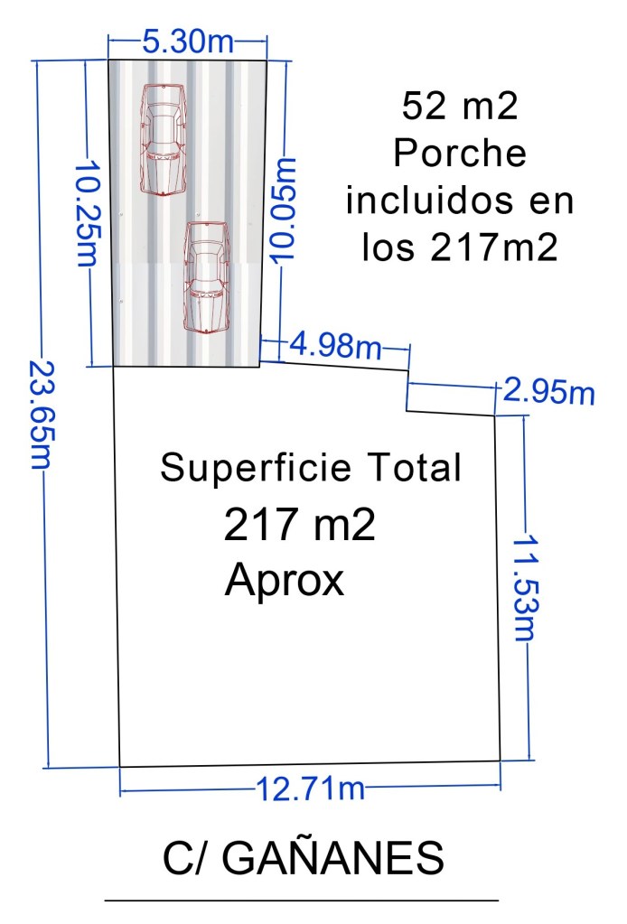 - Solar GRANDE, cuadrado ideal para la construcción de vivienda o cercado tal como está con un porche construido de 52 m2. Perfecto para almacenamiento y garaje.