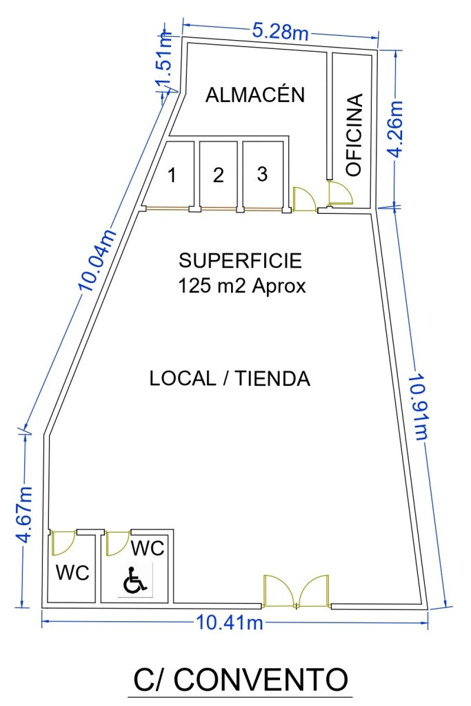 3 Probadores en la tienda, 2 Baños, 1 de ellos para discapacitados, gran almacén y oficina.